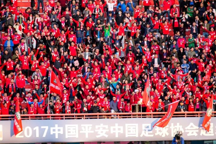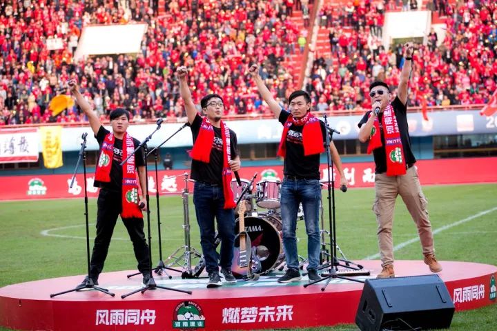 10月29日下午13:00,2萬余名身著紅色球衣的建業球迷陸續入場,他們揚起印著“風雨同舟 燃夢未來”的巨幅海報和幾十面大旗,震天的吶喊聲響徹整個航海體育場。