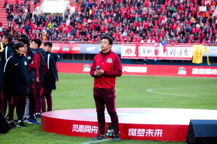 下午17:15,在全場2萬余球迷的呼喊聲中,河南建業足球俱樂部總經理郭光琪發表講話,郭總代表一線隊及俱樂部全體同仁對現場球迷及電視機前的觀眾朋友表達了最誠摯的感謝,是球迷們始終不懈的支持,支撐著建業球隊勇往直前,永不服輸,并期待2018賽季,專治不服的建業精神再次回歸航體。